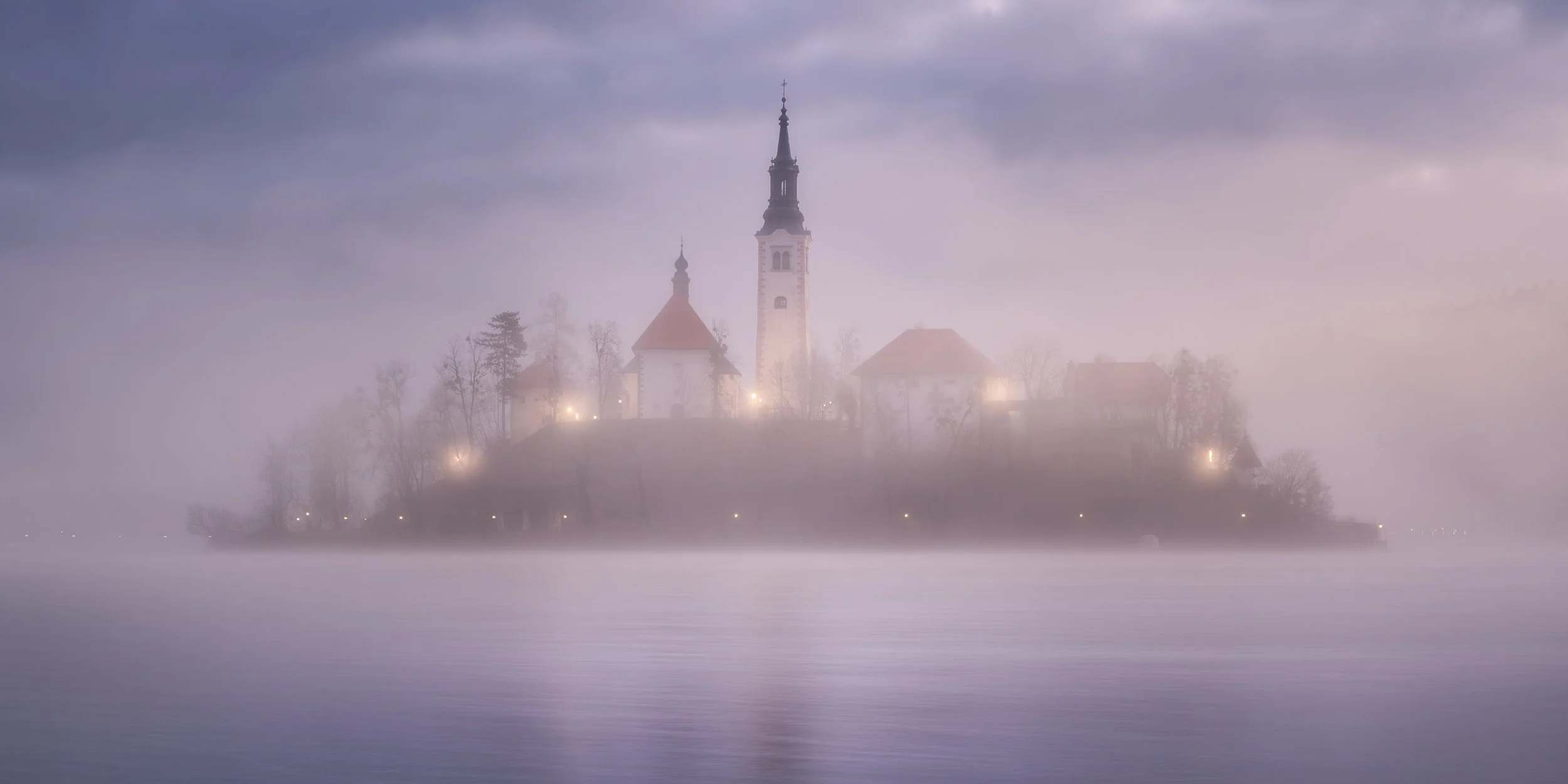 Mist Over Lake Bled Pano. Finished in top 25 of the Built Environment of the Amateur International Epson Pano Awards for 2025